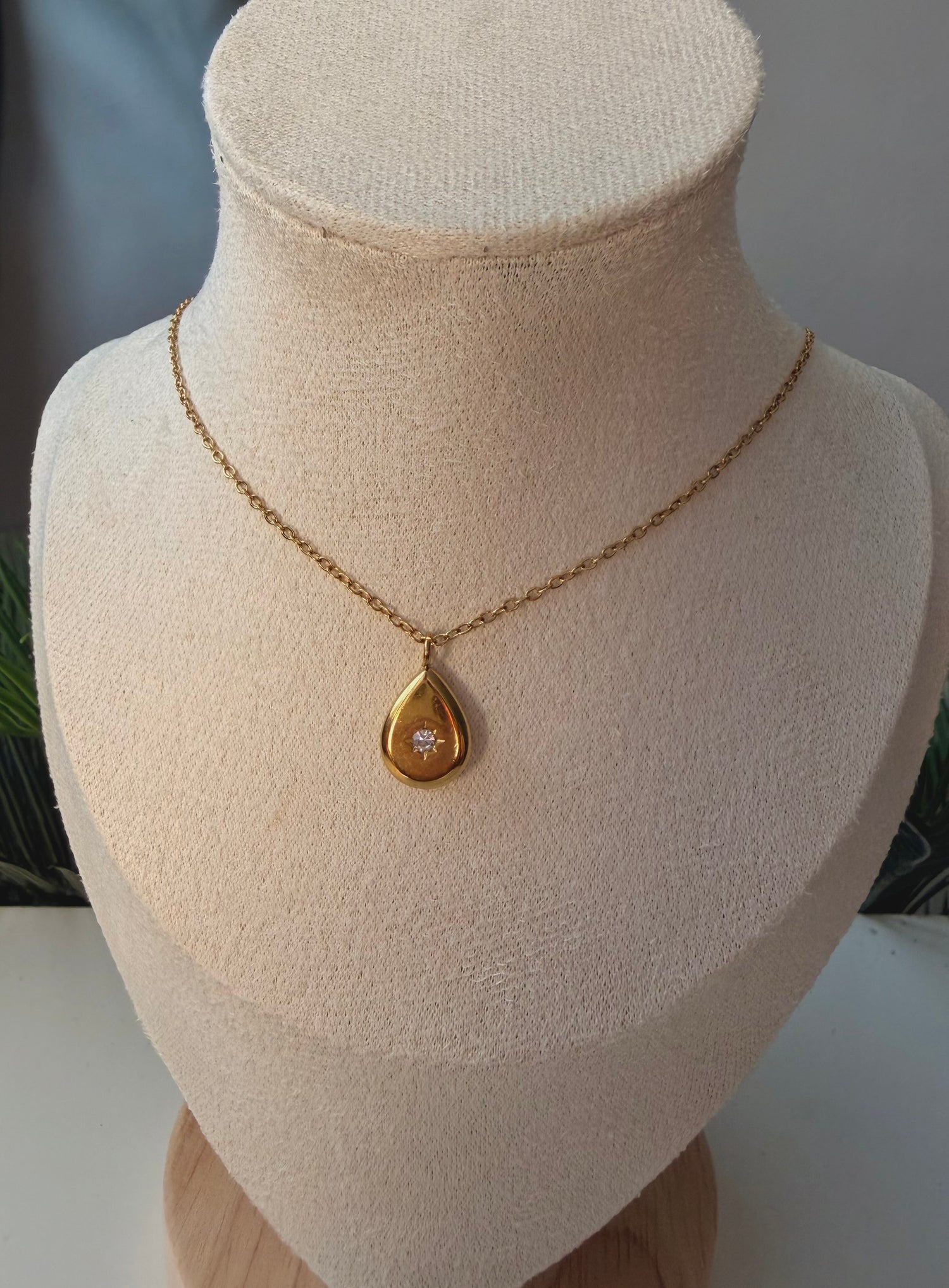Cadena en stainless steel color dorada con pequeño diamante en forma de estrella